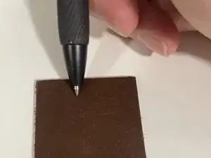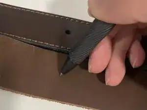С помощью ручки нанесите декоративные отметки на конец новой ленты ремня.