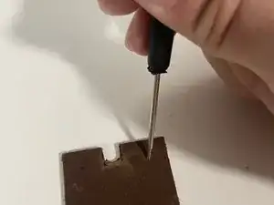 Если отвёртка недостаточно остра, можно использовать небольшой острый предмет, например ручную иглу.