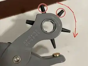 Чтобы пробить отверстие в коже, сильно сожмите рукоятки до щелчка пробойника.