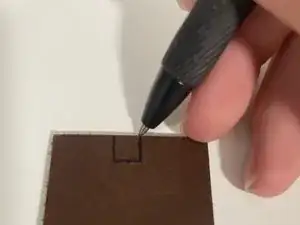 Используя ножницы, вырежьте квадратную отметку на новой ленте ремня.