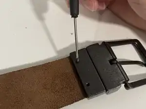 Возьмите маленькую отвёртку и начните откручивать два винта по обеим сторонам пряжки ремня.