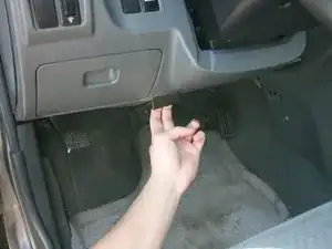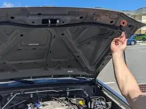 Опора находится примерно в 10 см за открывалкой защелки капота.