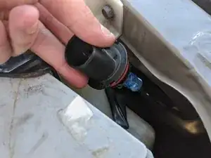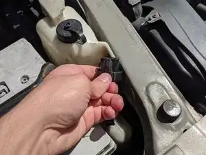 В этом руководстве настоятельно рекомендуется снять аккумулятор, если Вы заменяете правую лампу головного света. Снятие аккумулятора, хотя и не обязательно для замены лампы, позволяет легче получить доступ к задней части фары и сэкономит Ваше время и нервы при повторной установке удерживающего кольца под сложным углом.