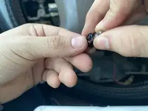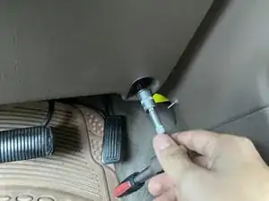 Используйте головку на 10 мм на трещотке, чтобы снять два болта на 10 мм рядом с рулевой колонкой.