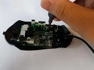 Выверните пять винтов 1.2 мм с помощью крестообразной отвертки Phillips #00 с нижней стороны мыши.