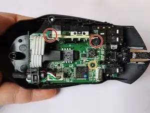 Выверните оставшиеся винты 1.2 мм под снятой платой и рядом с кнопками мыши с помощью крестообразной отвертки Phillips #00.