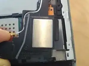 Используя лопаточку или ноготь, отсоедините синий антенный кабель от материнской платы.