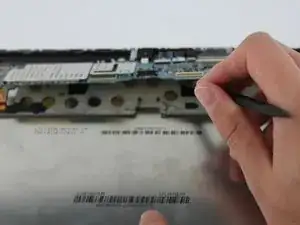 С помощью черной нейлоновой лопаточки аккуратно приподнимите материнскую плату от корпуса.