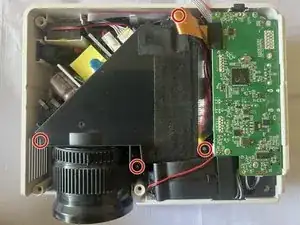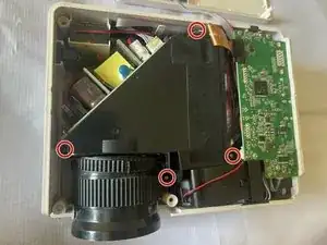 Используйте отвертку Philips #00, чтобы удалить пять винтов по 1,5 мм из основания проектора.