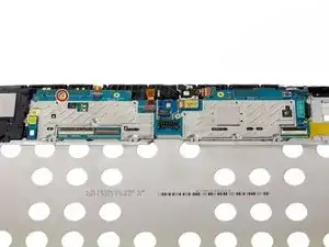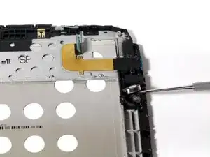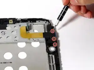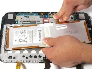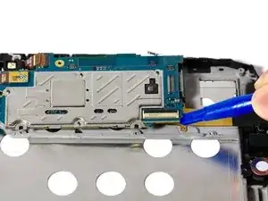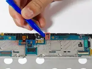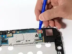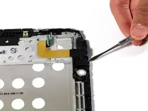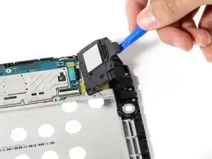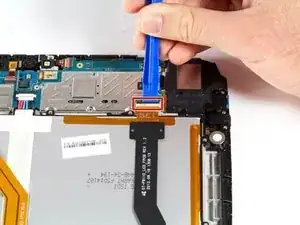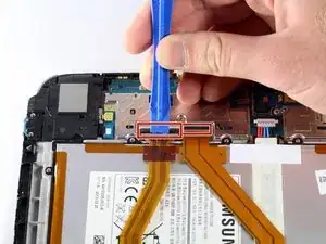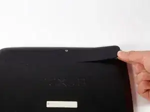 Используя пластиковый инструмент для вскрытия, снимите тонкую пластиковую панель с задней части планшета, поддев её за небольшой язычок.
