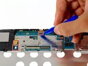 Освободите небольшой вибромотор, аккуратно поддев его вверх пластиковым медиатором.