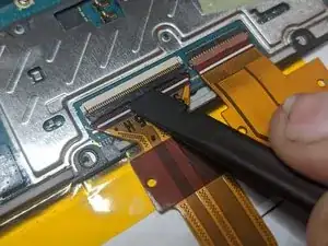 Отсоедините три шлейфа-разъёма, проходящие над аккумулятором, с помощью пластикового инструмента для вскрытия.