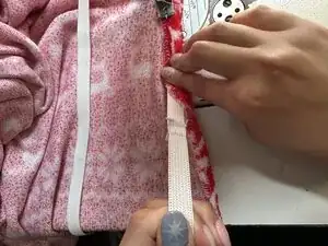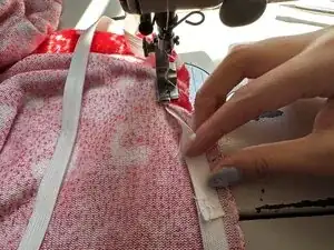 Убедитесь, что резинка лежит ровно и не перекручена перед шитьём.