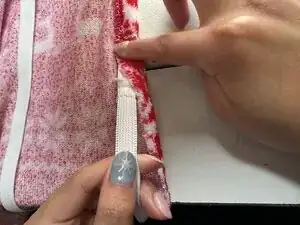 Аккуратно потяните резинку, чтобы отделить её от ткани.