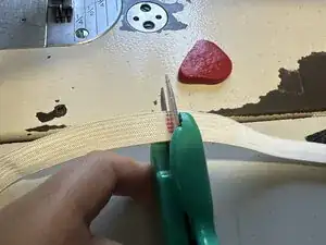 Обрежьте новую резинку швейными ножницами по отмеченной длине.