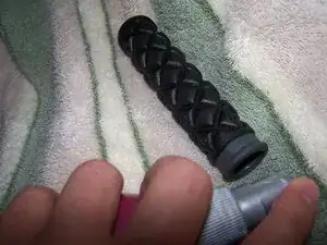 Распылите на руль и внутрь рукоятки лак для волос или смазку/клей.