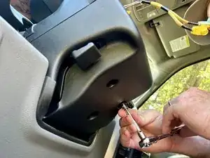 Снимите болт рулевого колеса с помощью трещотки и головки на 24 мм.