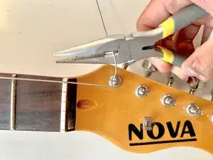 На шаге 8 при обрезке лишней струны будьте осторожны со стальными струнами — их концы острые.