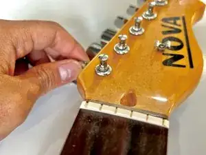 Используйте крутилку для струн, чтобы ослабить каждую струну, поворачивая колокружок против часовой стрелки.