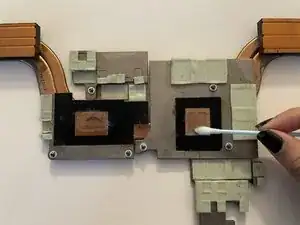 Очистите обратную сторону радиатора ватными палочками, смоченными в изопропиловом спирте высокой концентрации.