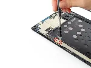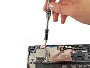 Снимите два винта Phillips #000 длиной 2 мм, расположенные над вторым ленточным разъёмом.