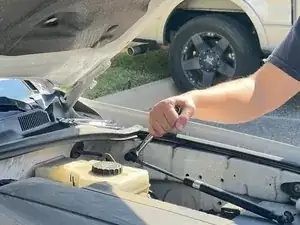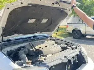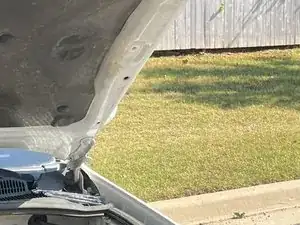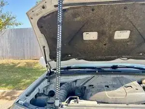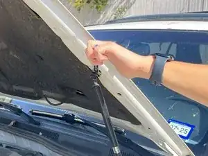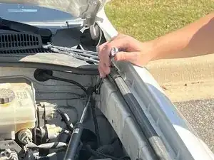 Возможно, стоит попросить друга поддерживать капот, чтобы убедиться, что подпорка правильно удерживает вес капота, пока вы выполняете следующую часть этого шага.