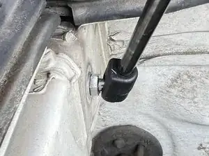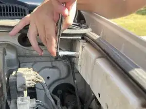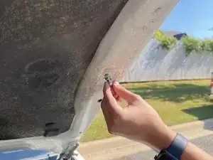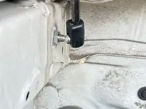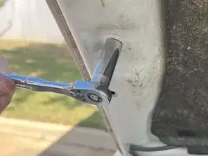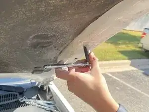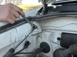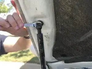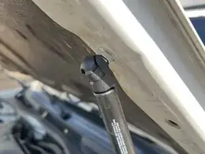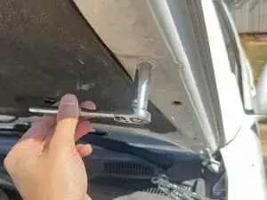 Снимите нижний болт старого упора капота, вращая против часовой стрелки, используя ключ на 12 мм.