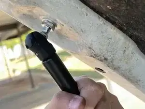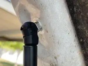 Аналогично предыдущему шагу, совместите верхнюю часть подпоры капота с шаровым шарниром, который Вы установили на шаге 12.
