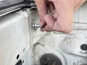 Возьмите новый болт и шайбу из комплекта упоров капота.