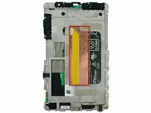 Аккуратно проведите пластиковым инструментом вдоль верхнего края, чтобы приподнять заднюю панель от переднего модуля Nexus 7.
