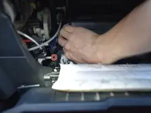 Отвинтите верхний винт модуля сопротивления с помощью отвёртки Phillips с длинным стержнем.