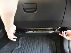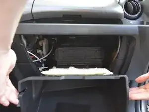 Нажмите на боковые стороны бардачка, чтобы освободить его.