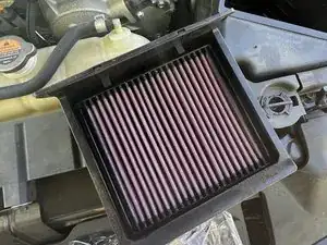 Вставьте воздушный фильтр обратно в правильной ориентации и зафиксируйте корпус воздушного фильтра.