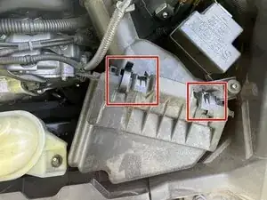 Поднимите два зажима на черном корпусе воздушного фильтра.