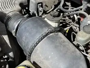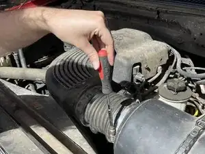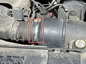 Используйте отвертку с плоским лезвием или динамометрическую головку, чтобы ослабить хомут, который соединяет корпус воздушного фильтра с воздухозаборной трубкой.