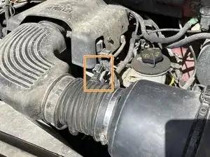 Чтобы отключить датчик массового расхода воздуха, нажмите на вкладку разъема и потяните его от датчика.
