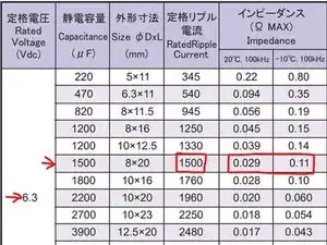 Теперь посмотрите даташит. Если допустимый ток пульсаций равен или выше (при той же температуре и частоте [Hz/KHz]), ESR равен или ниже (при той же температуре и частоте [Hz/KHz]) (если применимо), и конденсатор того же размера или меньше (можно использовать более крупный конденсатор, если он поместится), то этот конденсатор подойдёт.