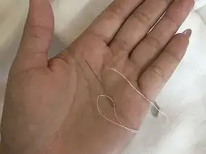 Отрежьте лишнюю длину в зависимости от размера отверстия и завяжите узел на конце нитки.