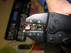 На другой конец надет ленточный контакт и на него забит штифт молотком.