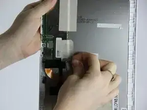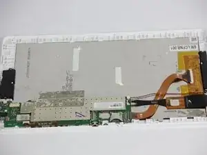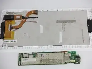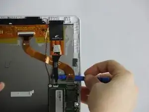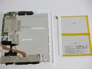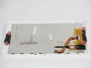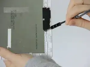 После извлечения аккумулятора, материнской платы и динамиков вы получите доступ к экрану. С помощью отвертки Phillips #00 и чёрного пластикового лопатки мы покажем, как снять экран.