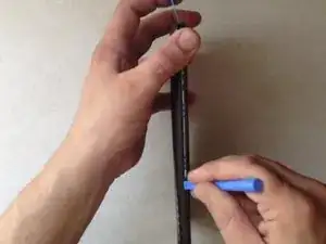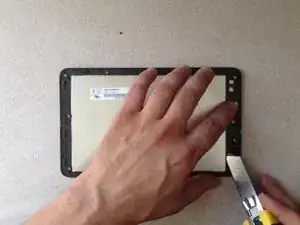 Используйте лезвие только чтобы начать отслаивание сенсорного экрана. Затем продолжайте пластиковым инструментом.