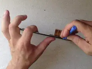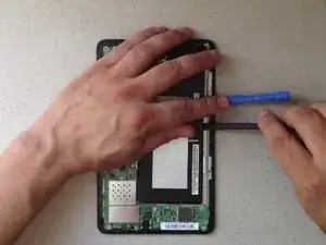Используйте лопатку, чтобы ослабить защёлки, удерживающие ЖК-дисплей.