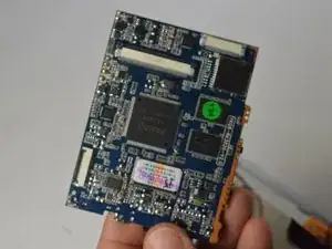 Пинцетом аккуратно захватите гибкий кабель и вытяните его, удерживая другой рукой камеру на месте. После извлечения камера свободна и её можно отложить в сторону.