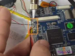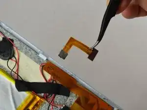Пинцетом аккуратно захватите гибкий кабель и отключите его от разъема.