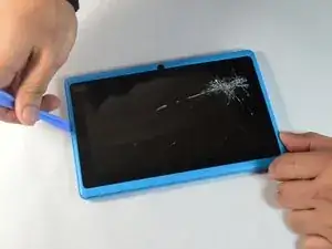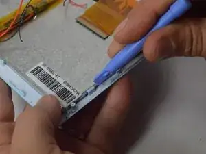 Пластиковым инструментом для вскрытия подденьте между пластиковым корпусом и экраном, чтобы освободить экран. Как только он освободится, начните отделять экран от корпуса.