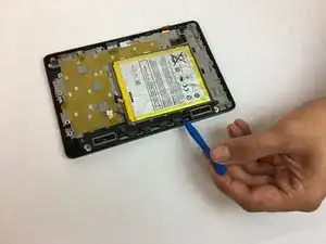 Вставьте пластиковый инструмент для вскрытия за заднюю крышку, чтобы освободить защёлки, удерживающие корпус.
