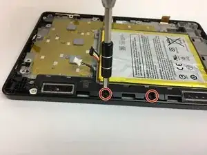 Удалите шесть чёрных винтов вокруг аккумулятора и динамика с помощью отвертки T5 Torx.
