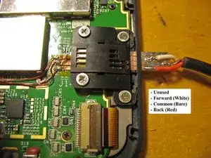 Вот внешний разъём, который предстоит переналадить. Он прикручен четырьмя винтами #00 JIS и не припаян к контактам на логической плате.