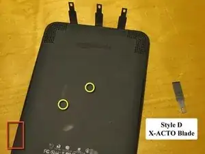 Задняя крышка удерживается защёлками по всему периметру и двумя в центре. Я использовал несколько лезвий типа D X-ACTO, но поддеватели другого типа тоже могут подойти.