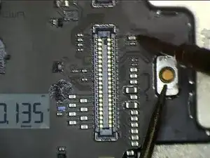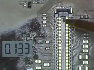 Установите заведомо исправный дисплей. Экран по-прежнему не реагирует на прикосновения. Можно заключить, что проблема не вызвана повреждением дисплея. Неисправность материнской платы привела к проблеме. В первую очередь проверяем разъемы сенсора на деформацию или повреждения. Видно, что разъемы в порядке.